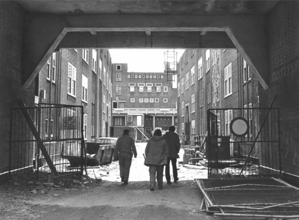 Four-story, Flat-roofed Complex in a Somewhat Expressionist Style