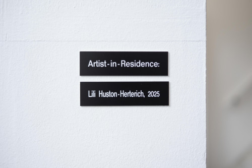 Image: The permanent name label by the entrance to A Tale of A Tub, tracing the artists who have been temporary occupants of the space since the residency program began in 2025.