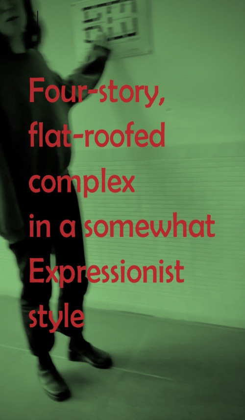 Four-story, flat-roofed complex in a somewhat Expressionist style
